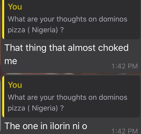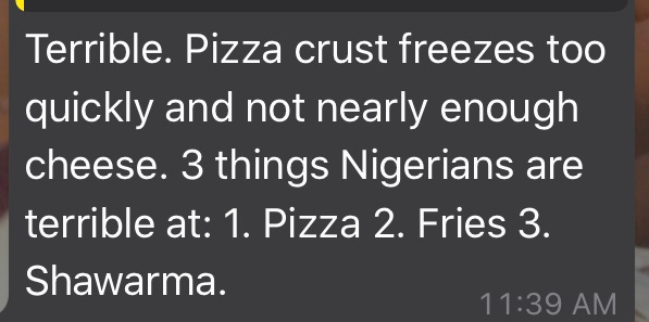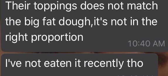 Now you might say it’s just the branch I buy from,I’m being extra, it’s an acquired taste or what exactly is the problem with the pizza.